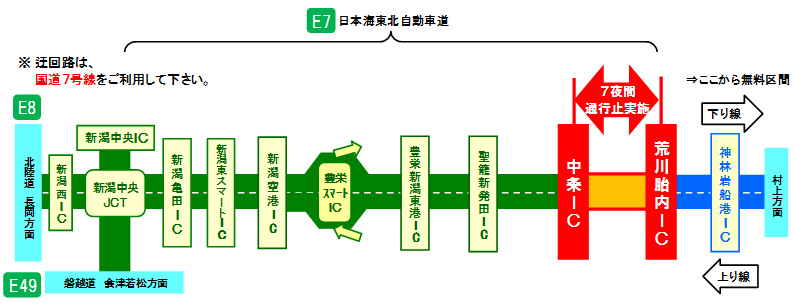 | 区間 | 日本海東北自動車道 中条IC~荒川胎内IC(上下線) |