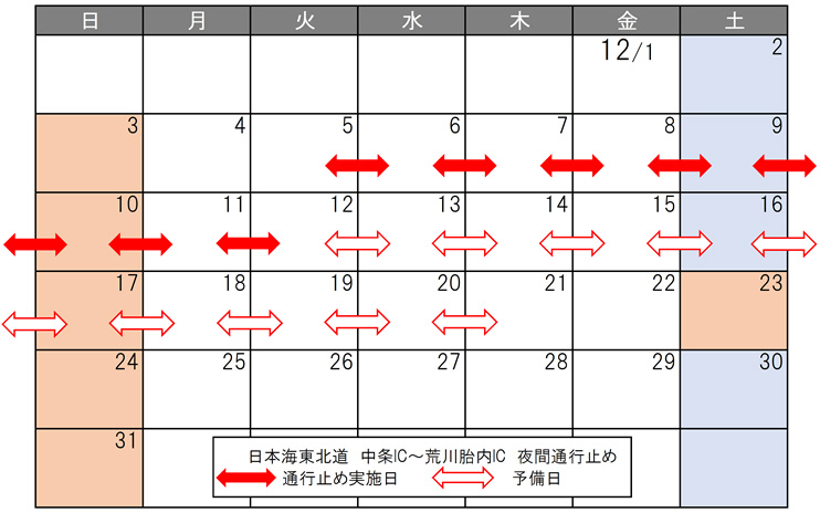 | 期間 | 12月5日(火)~12月11日(月) 【7夜間】 (予備日)12月12日(火)~12月20日(水) |