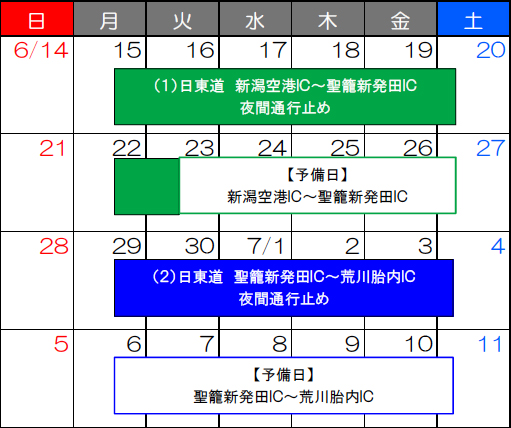 | 実施時期 | 6月15日(月)~6月22日(月)【6夜間】 ※土日の夜間は実施しません 予備日:6月23日(火)~6月26日(金) |