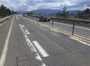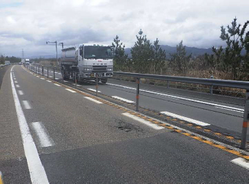日東道 新潟空港IC~荒川胎内ICの損傷した路面の補修を行います。