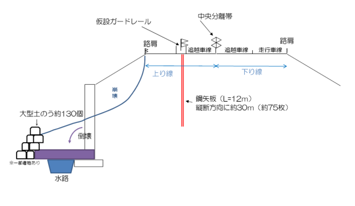 今週末までに追越車線を確保することを目標に、復旧工事に着手しています。なお、工事の進捗状況について、別途お知らせします。