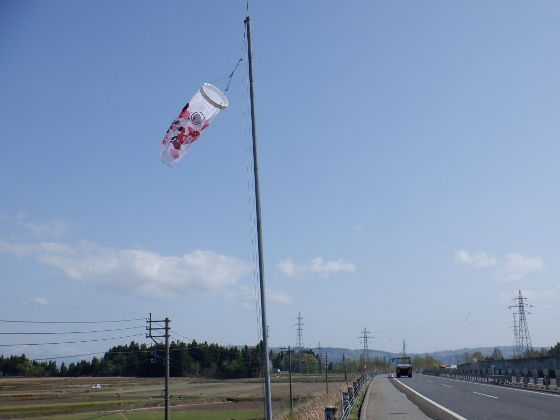 高速道路に「錦鯉柄の吹き流し」を掲揚