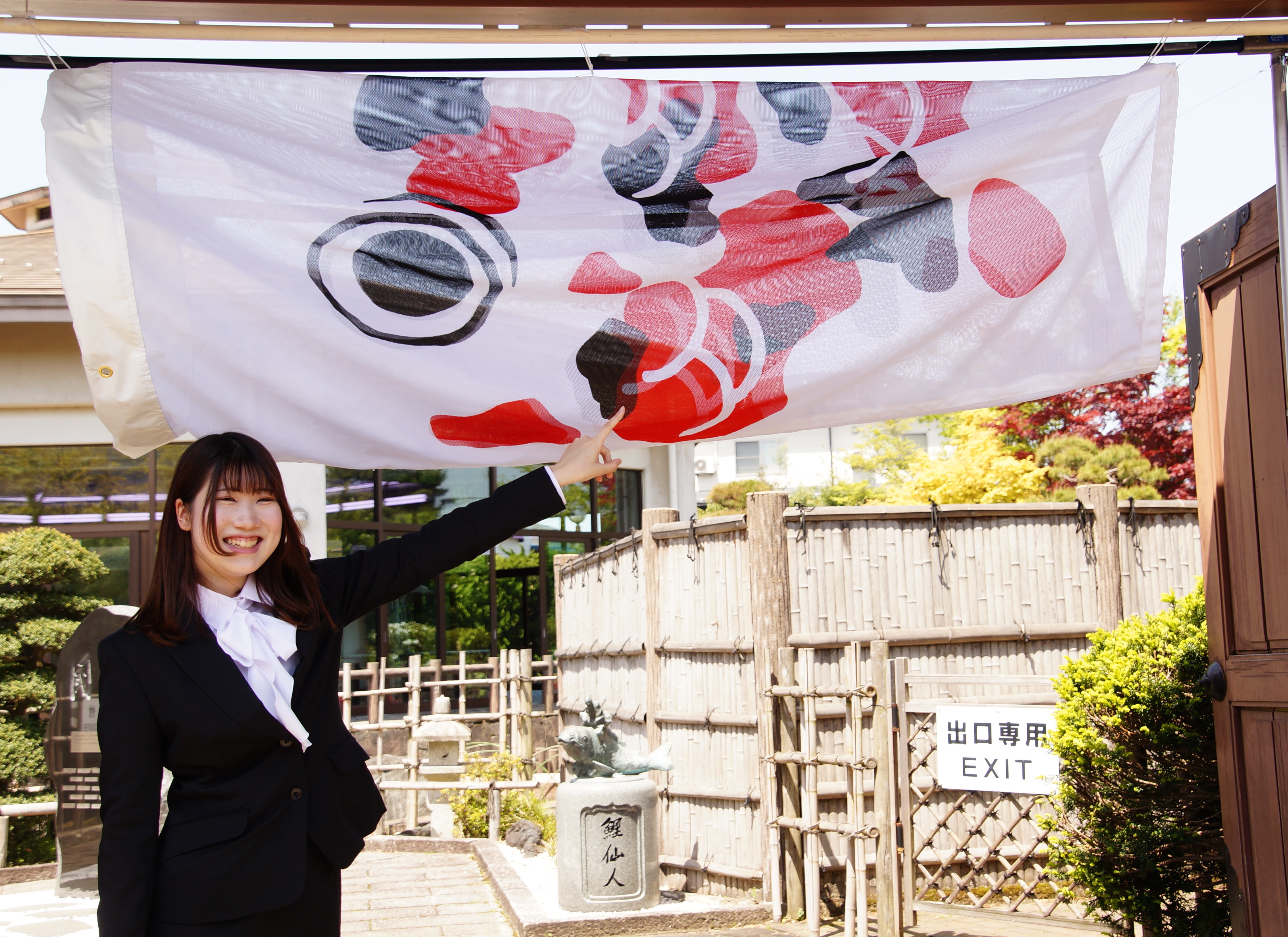 NEXCO東日本長岡管理事務所(長岡市)は、小千谷市及び長岡市並びに公立大学法人長岡造形大学(長岡市)と連携して、地域の財産である錦鯉の模様をデザインした吹き流しを製作しました。錦鯉柄のデザインは長岡造形大学プロダクトデザイン学科4年 功刀 鈴花(くぬぎ すずか)さんが担当しました。