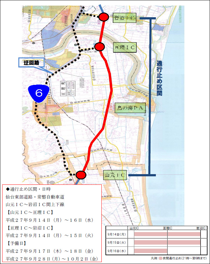 (亘理IC~岩沼IC間)夜間通行止めの実施について