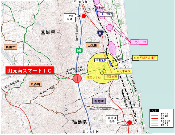 山元南スマートICは、山元町坂元地区に位置し、震災からの復興、地域の企業活動の活性化、観光集客の増加などが期待されています。 - 高速道路ナンバリング