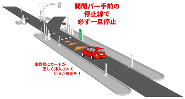 - ご利用にあたっては、ETC車載器にETCカードを挿入して通行してください。