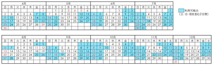 - 詳しい利用期間は、「5.ご利用可能日カレンダー」をご覧ください。