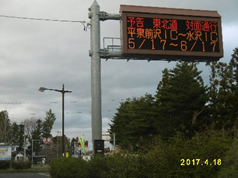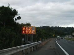 規制予定は、高速道路上の情報板(電光掲示板)に加え、東北地方を中心に、テレビCM、ラジオCM、新聞広告により規制内容を事前にお知らせし、休憩施設には立看板の設置やポスター・リーフレットを掲示します。 - お知らせイメージ