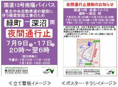 【E13】東北中央自動車道の建設に伴う国道13号(南陽バイパス)緑町交差点~深沼交差点 夜間通行止めのお知らせ