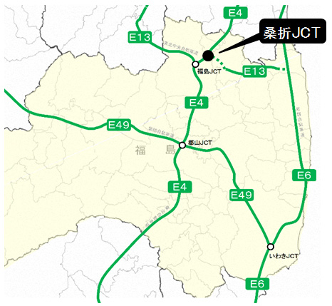 NEXCO東日本福島管理事務所(福島県福島市)は、E4東北自動車道 福島飯坂インターチェンジ(IC)から国見IC間に、E13東北中央自動車道(相馬福島道路)と接続するジャンクション(JCT)事業を実施しておりますが、この度JCT名称を下記のとおり決定しましたのでお知らせします。