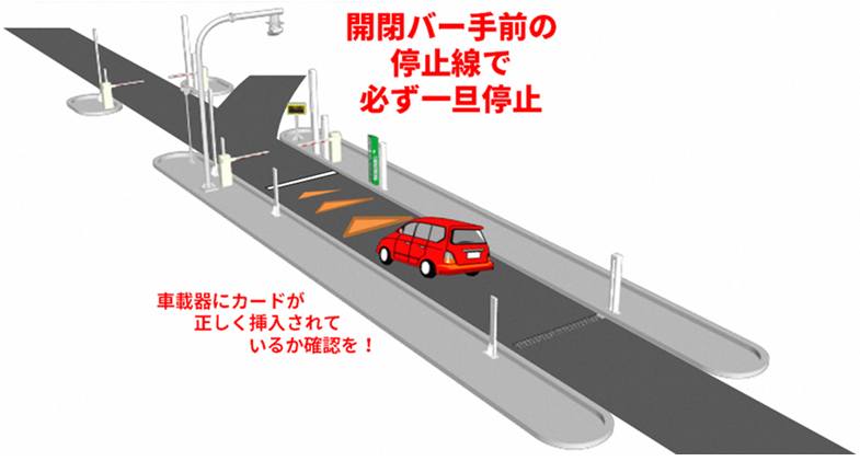 - ご利用にあたっては、ETC車載器にETCカードを挿入して通行してください。