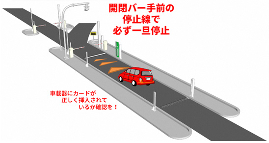 - ご利用にあたっては、ETC車載器にETCカードを挿入して通行してください。