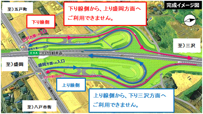 - なお、八戸西スマートインターチェンジの開通に合わせて、第二みちのく有料道路から八戸自動車道方面のETCによるご利用が可能となります。