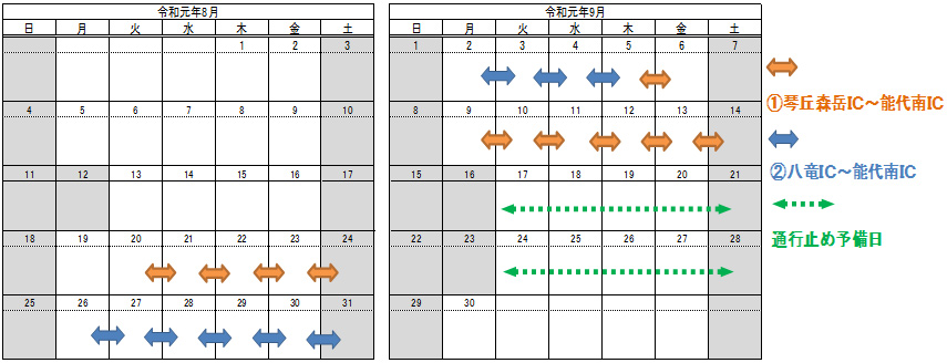 令和元年9月5日(木)~13日(金)(6日間) - 八竜IC~能代南IC間(上下線)