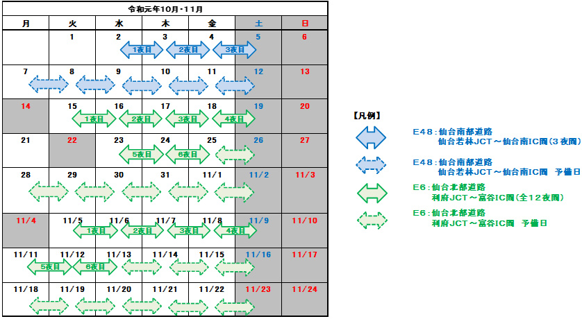 【2】令和元年10月15日(火)~10月24日(木) 毎夜21時~翌6時まで 6夜間