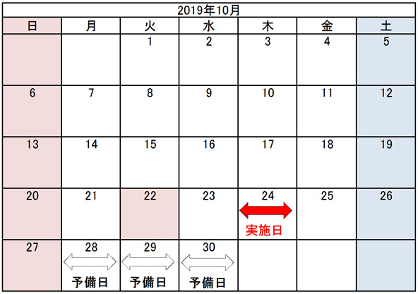 ※予備日:令和元年10月28日(月)、29日(火)、30日(水)