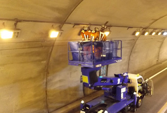 安全に走行していただける道路環境を保持するためのトンネル内設備点検を実施します。