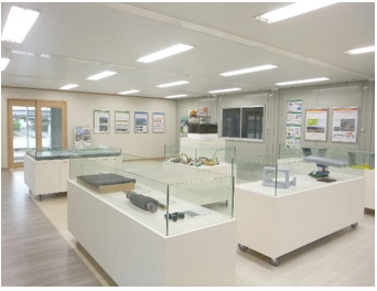 当ルームでは、4車線化事業の概要を説明するパネルを始め、4車線化工事のジオラマ・工事車両のミニチュア・ニューマチックケーソンの模型等の展示を行っています。