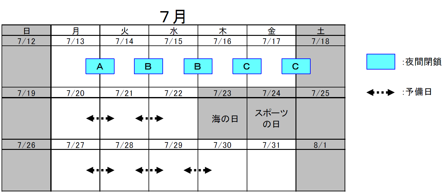 予備日:令和2年7月20日(月)~29日(水) 20時~翌6時