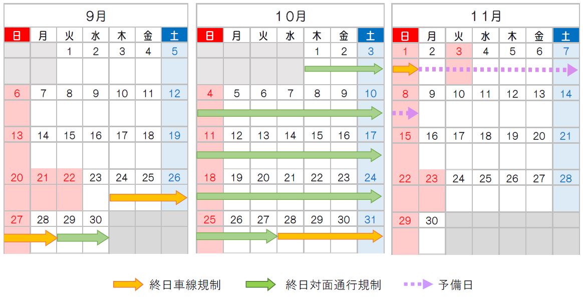 (1)通行規制期間 令和2年9月24日(木)~11月8日(日)≪46日間≫