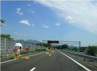- 対面通行規制区間では走行車線や路肩は狭くなっているため、走行する際は規制速度を遵守し、車間距離を確保して追突事故などには十分注意をお願いします。また、対面通行規制区間の前後では大きく車線が切り替わりますので、現地の案内看板などに従って通行をお願いします。