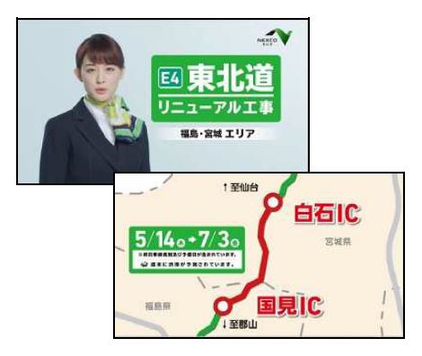 テレビCM、ラジオCM、新聞広告などによる工事規制や渋滞情報の事前告知