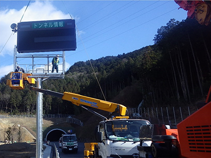 老朽化に伴う可変式道路情報板の更新工事を実施します。