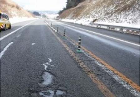 損傷した舗装の補修工事及びワイヤロープ式車線区分柵の設置工事を行います。