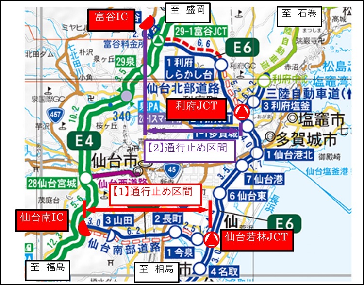 - 【1】仙台南部道路 仙台若林JCT~仙台南IC間(上下線)