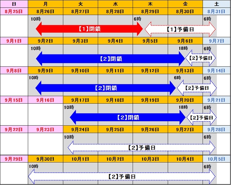 1.閉鎖箇所および日時
