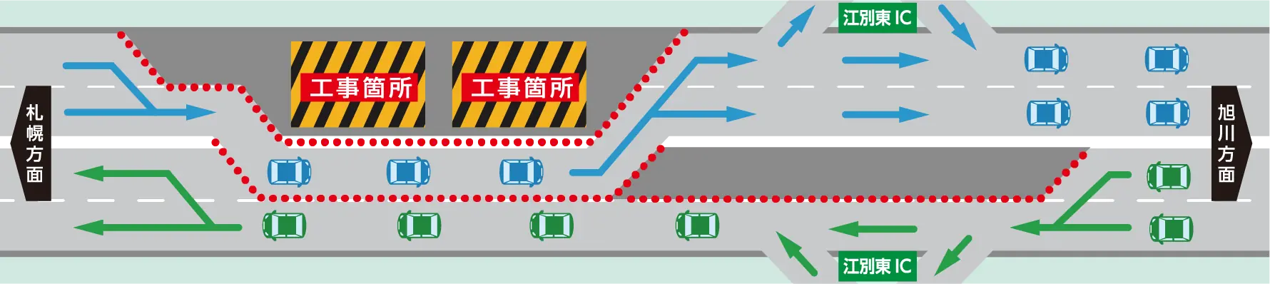 車線幅員、路肩幅員が狭くなる場合もありますのでご注意ください。