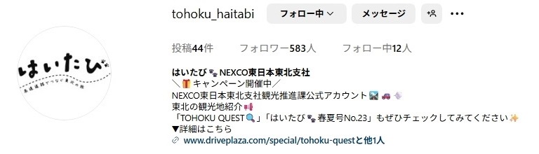 以下のアカウントをご利用される際は、NEXCO東日本 SNS利用方針【PDF:91KB】の内容をご確認ください。