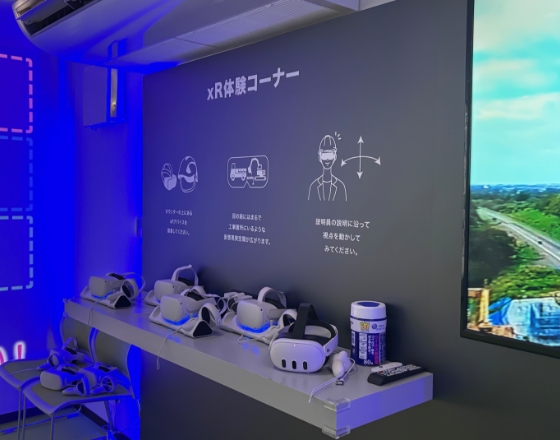 工事の概要、工事現場で実施している最新のICTやデジタル技術の紹介、VR等を用いた現場体験ができ、早期完成に向け生産性の高い建設現場を目指しています。
