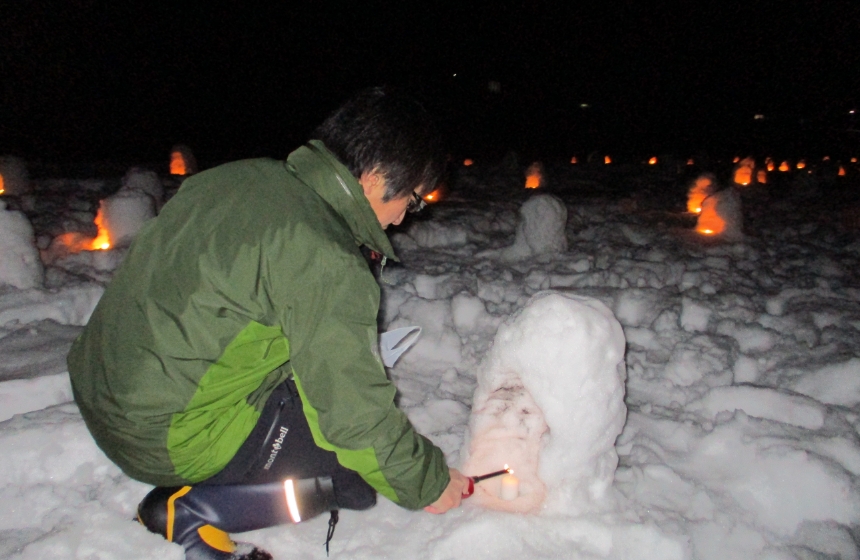 • かまくら内のろうそくへの点灯