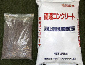 プレミックスタイプの粉体と専用骨材をセットにした、RC床版の部分補修に最適な補修