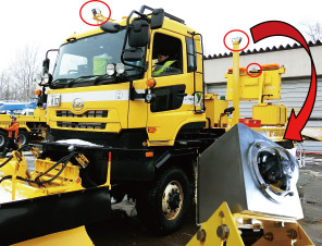 4台のカメラを搭載し俯瞰画像で除雪車周辺の状態を常時把握。作業の安全性を向上し、オペレーターの負担軽減を実現します。