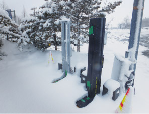 本製品はガラスヒーター×フラット構造で、豪雪地帯においても着雪を防止するとともに清掃も容易です。