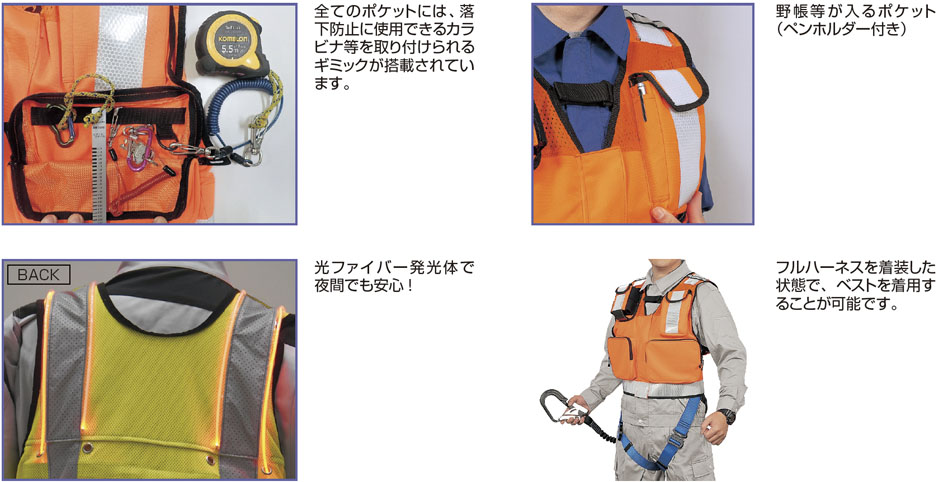 E-safely 高視認マルチ安全ベスト (フルハーネス型対応)