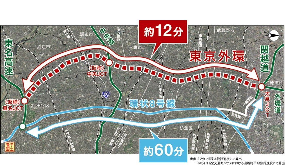 また、目白通り・青梅街道・東八道路との接続部に、ICが設けられます。