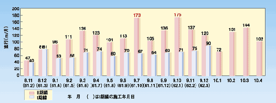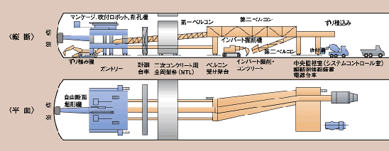 在NEXCO东日本,针对这些施工示例,旨在提高隧道开挖效率,配备了机械开挖型多功能全断面挖掘机(TWS)等,配备了NTL(混凝土的全方位模板)等。 )进行了开发,并在泥岩隧道的北陸自動車道Sanno隧道的第二阶段线施工中进行了测试施工。通过这种施工,我们能够以大约是Stage I线上施工速度的两倍的速度实现快速施工。