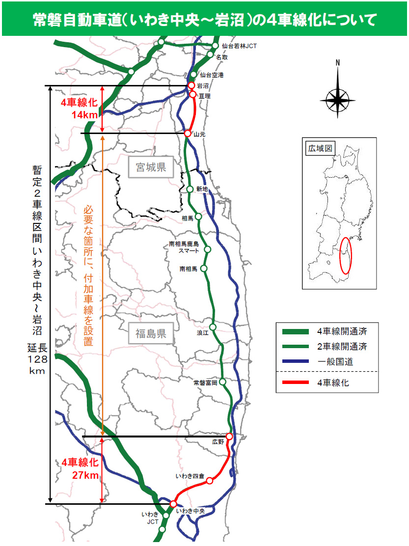 朝着常磐高速公路的四车道,我们将与相关组织合作与合作,并致力于在重建和创造期内约五年内完成该项目。