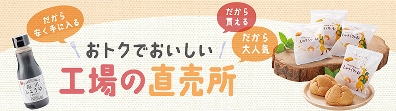 北海道有许多各种食品制造商的工厂。工厂附属或毗邻的直营店有直销产品和新鲜制作的美味佳肴,只有在那里才能享受到。为何不在这样的厂家直销店享受超值优惠呢?