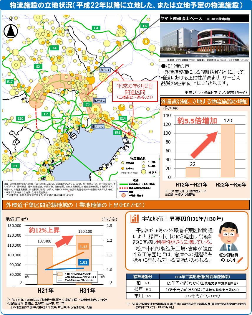- 外环千叶区间沿线地区的工业用地地价上涨了12%左右(H 21年→H 31年)。