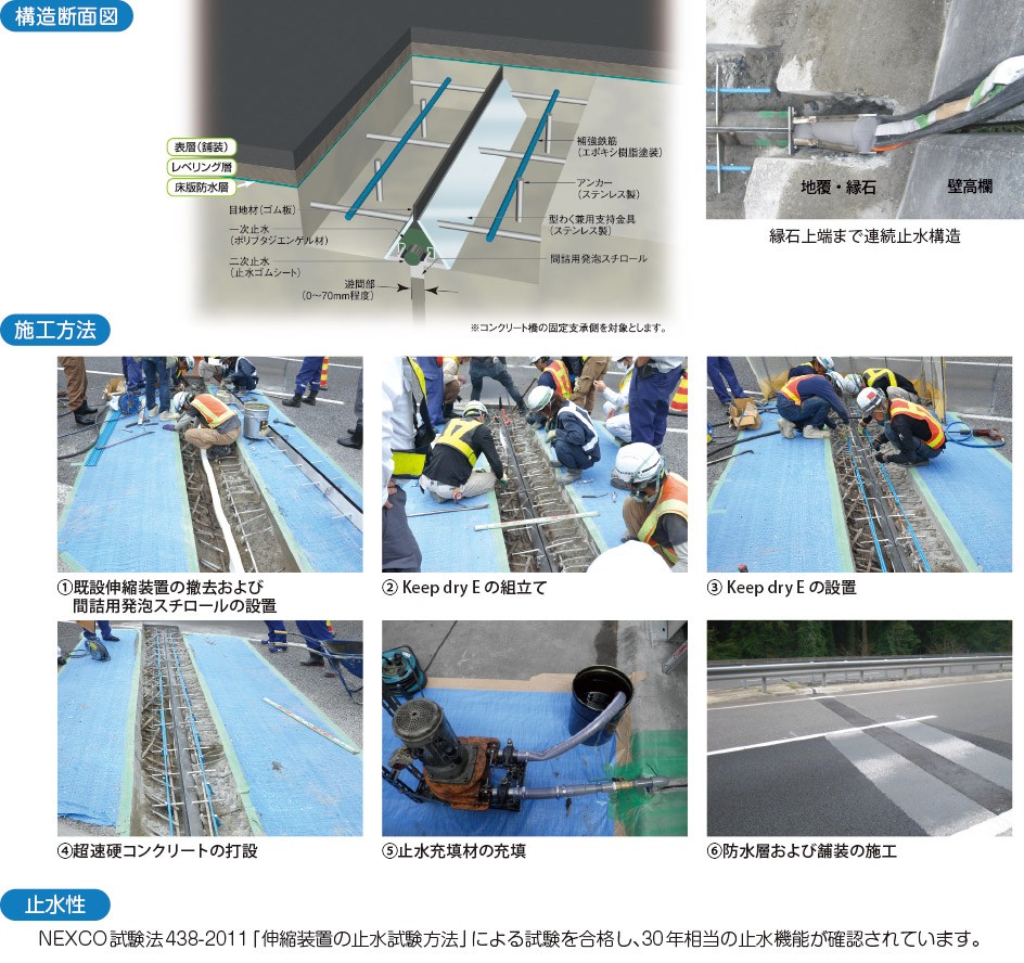 Keep dry E(Embedded)は、コンクリート橋のなかでも遊間部を対象とし、優れた止水機能・耐久性