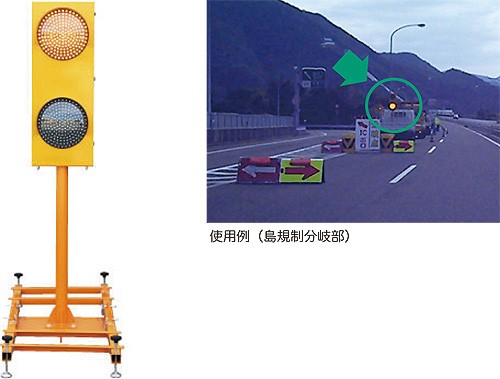 道路分岐部の工事規制時に設置し、ドライバーに分岐位置の変更を知らせます。