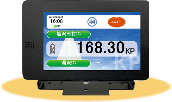GPSの緯度経度情報を利用して、高速道路のキロポストをリアルタイムに表示します。