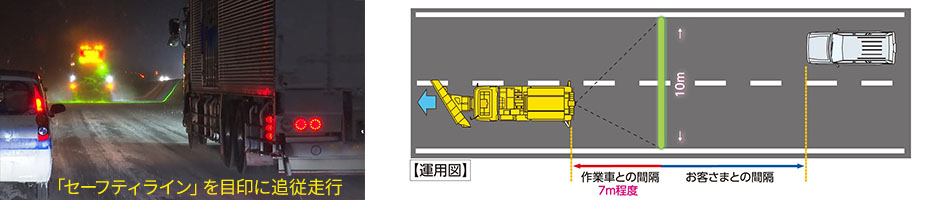 当从远处接近冰雪工作车辆时,驾驶员通过“确保与接近的车辆保持一定距离并跟随它”来使用该“线”作为标记,以防止与冰雪工作车辆发生碰撞。
