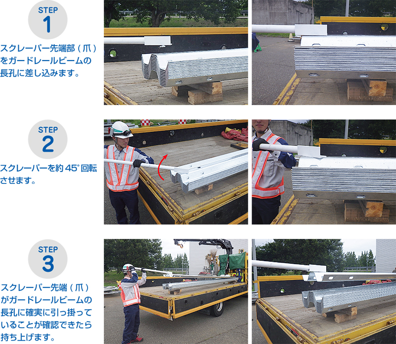 任何人都可以轻松提起堆叠的护栏梁(约70公斤/张)。