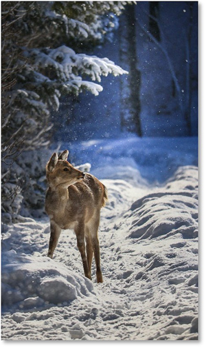 「北海道の四季」部門最優秀賞の『雪の中の妖精』は、「北海道の四季」部門初の動物写真による最優秀賞です。目の前に「パッとでてきた一頭の鹿」を撮ったとのことですが、鹿の表情や毛の質感、舞い散る雪と空気感、遠近に展開する光と影、硬軟のフォーカス(ピント)が相まって、白昼夢のような一瞬を記録しています。「名人」も多い動物写真の分野では、被写体をドキュメンタリーあるいはドラマ性で捉える場合が多いですが、本作品には今のコンテストには見ないテイストが感じられました。