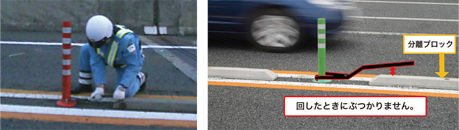 - 橡膠桿(在基座上帶有兩個孔的類型)通常用於高速公路和普通收費公路等雙向通道中,每種產品可適應不同的孔距。